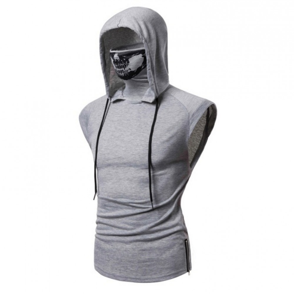 Male Skull Vest Plus Size T-Shirt Plus Size Hooded Masked Fashion Sleeveless T-Shirt