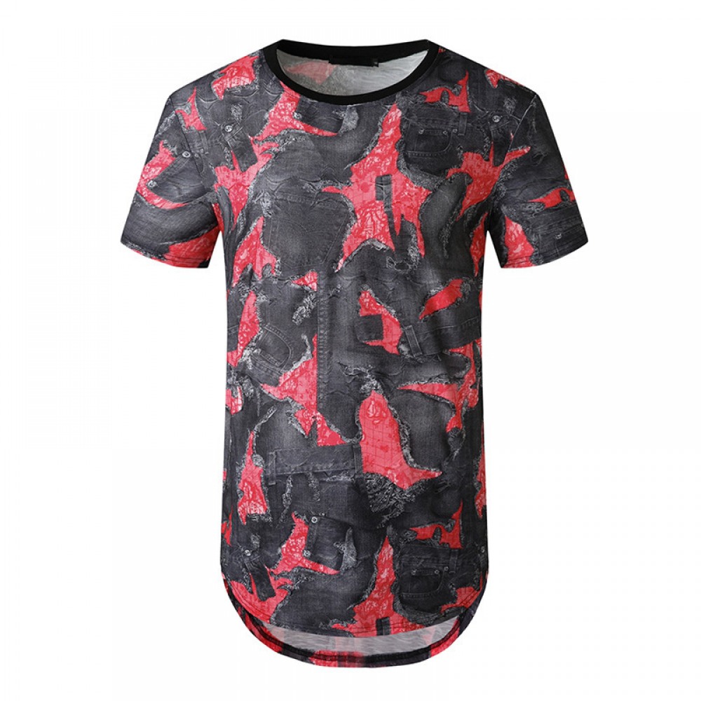 Men's Short-Sleeved T-Shirt With Irregular Large Slits