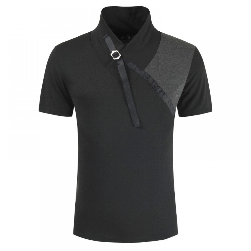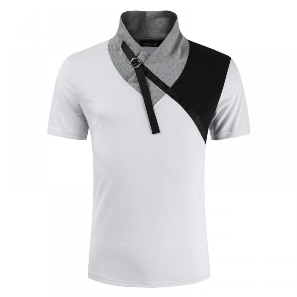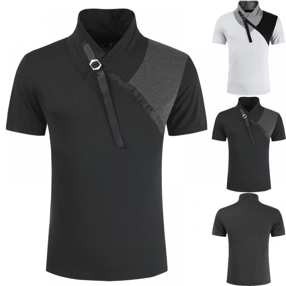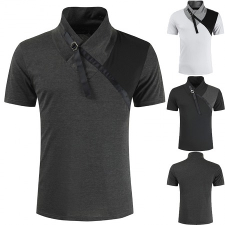 Summer Color Matching Business Casual Shirt Lapel T-Shirt Men's Shirt Collar Short-Sleeved Shirt Work Bottoming Shirt