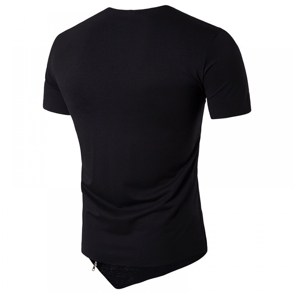 Summer New Men's Fashion Hip-Hop Round Neck Stylish Personality Hem Short-Sleeved T-Shirt